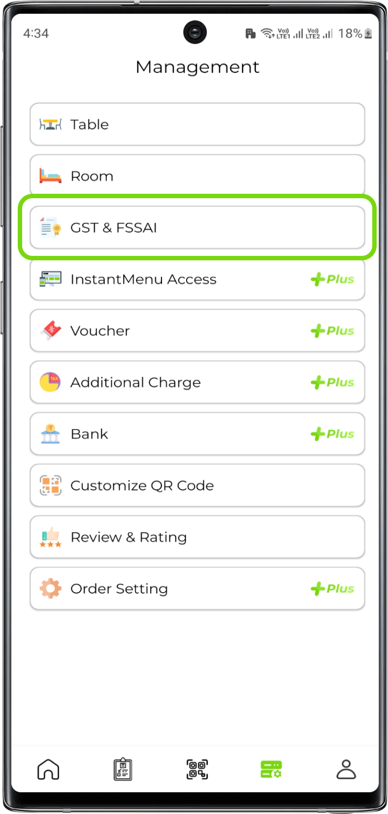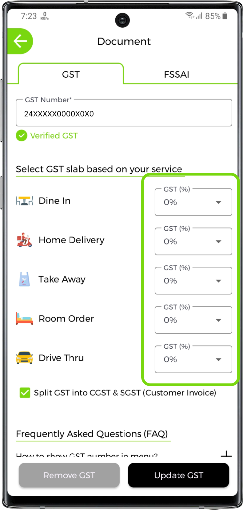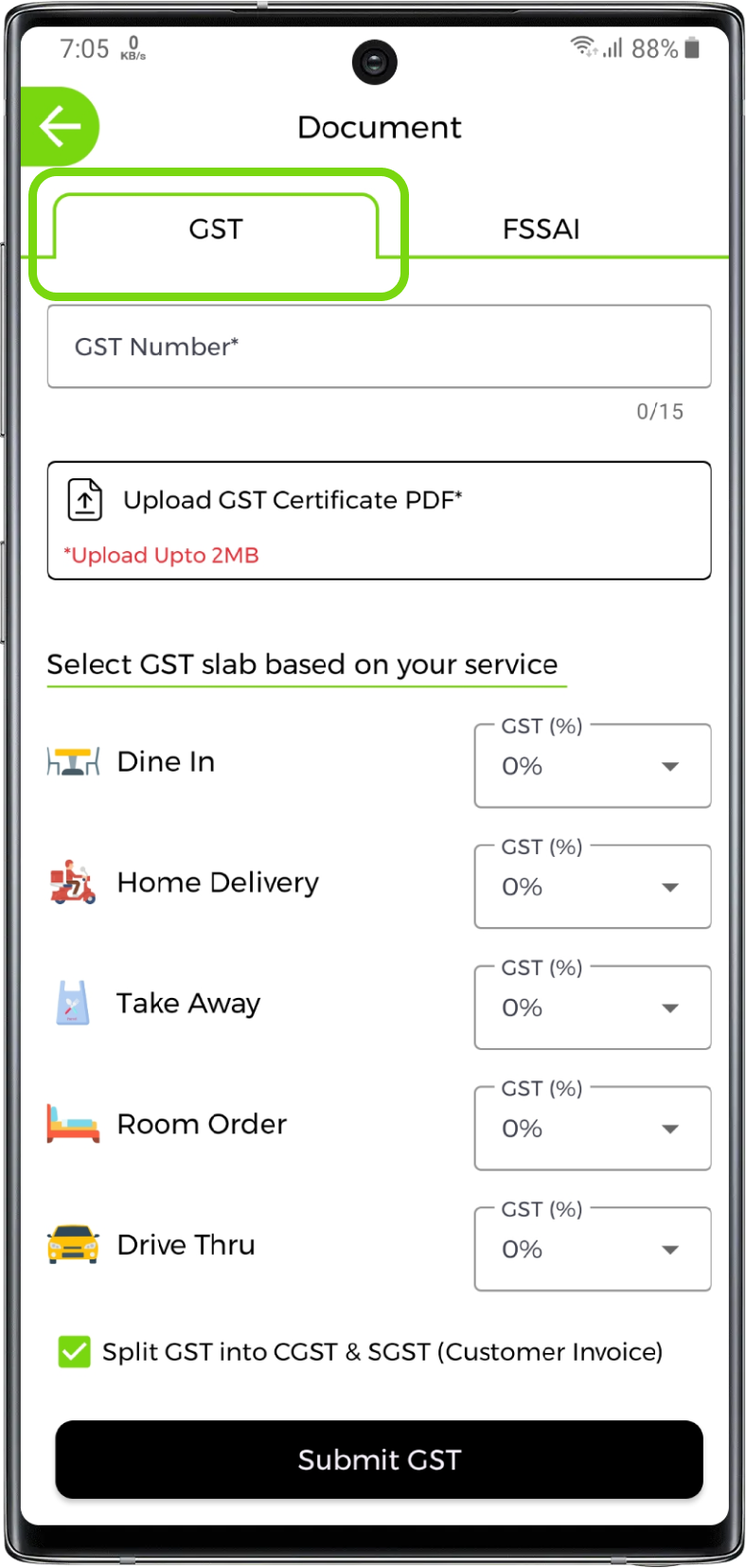 If you want to show GST number in your digital menu you have to add GST details. Once your GST number is verified from InstantMenu, it will be viewed in your outlet's digital menu as well as you can collect GST credit on it. You can set gst slabs from the gst slabs list on the basis of services - like apply GST of 5% on home delivery order, etc.