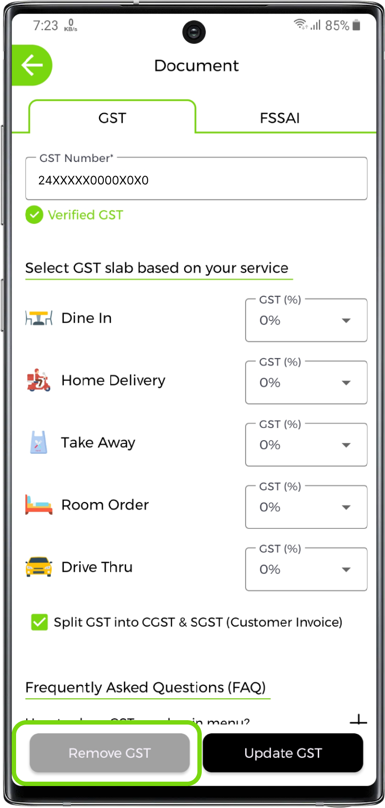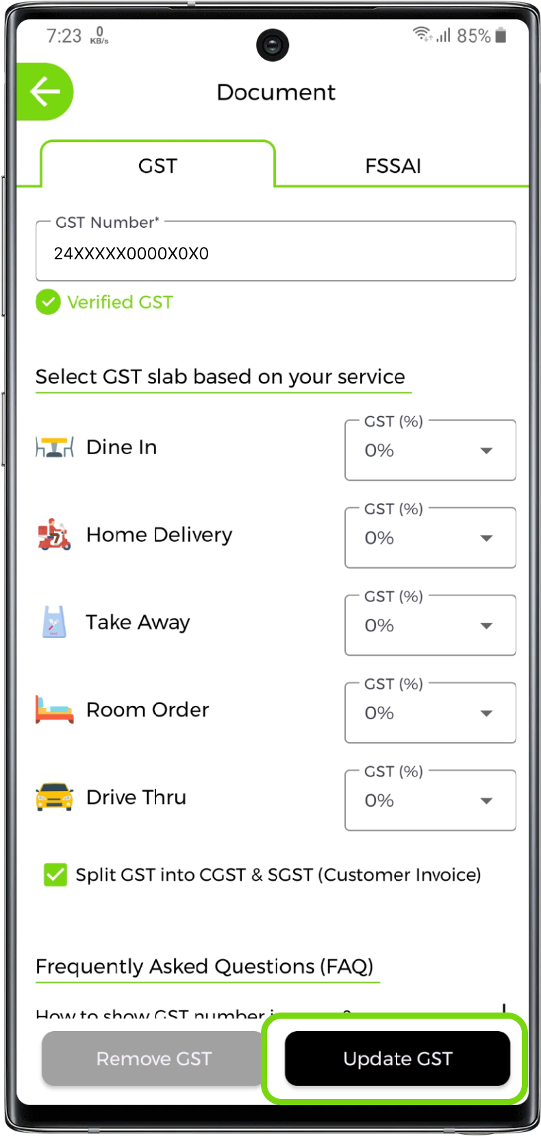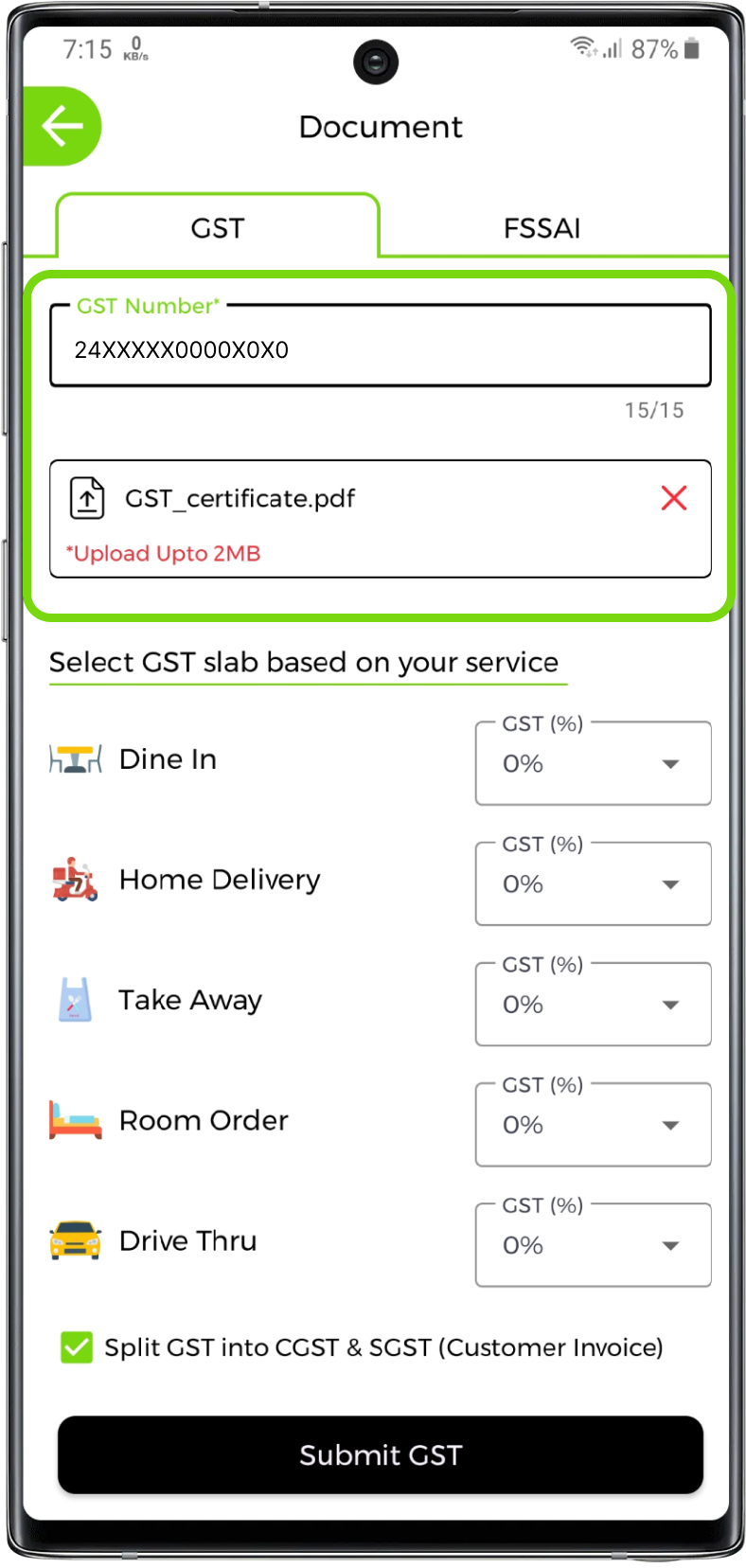 If you want to show GST number in your digital menu you have to add GST details. Once your GST number is verified from InstantMenu, it will be viewed in your outlet's digital menu as well as you can collect GST credit on it. You can set gst slabs from the gst slabs list on the basis of services - like apply GST of 5% on home delivery order, etc.