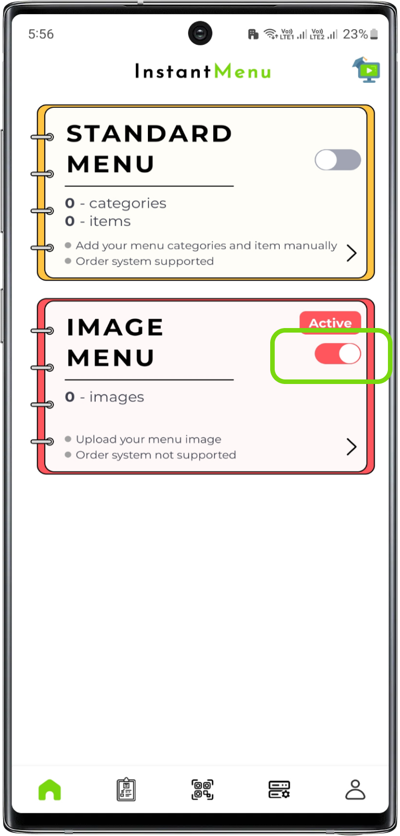 Image Menu offers the facility where in you can upload your physical copy of your outlet's menu in form of image. This will help your customers to view your whole physical menu into digital menu on their screens in quick seconds.
