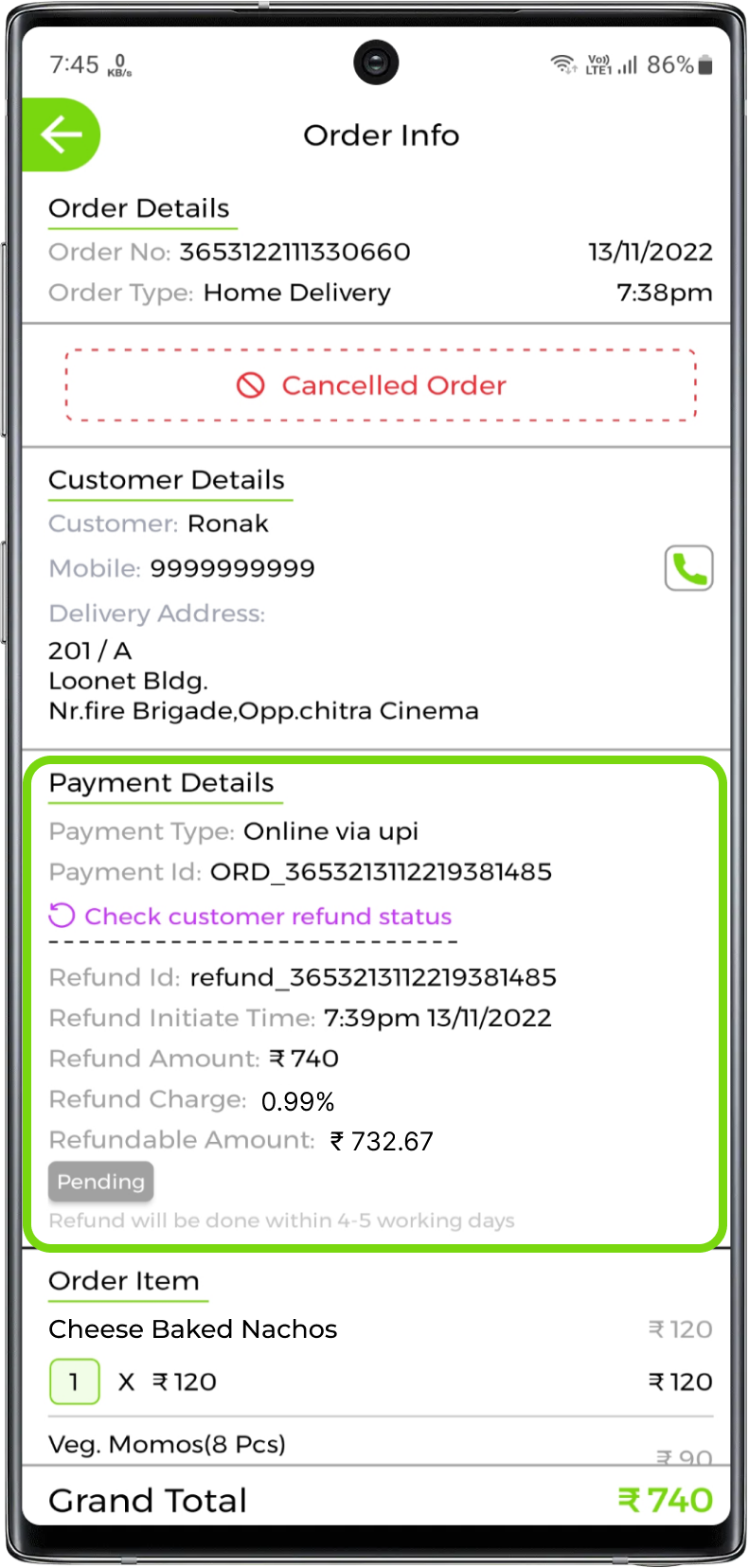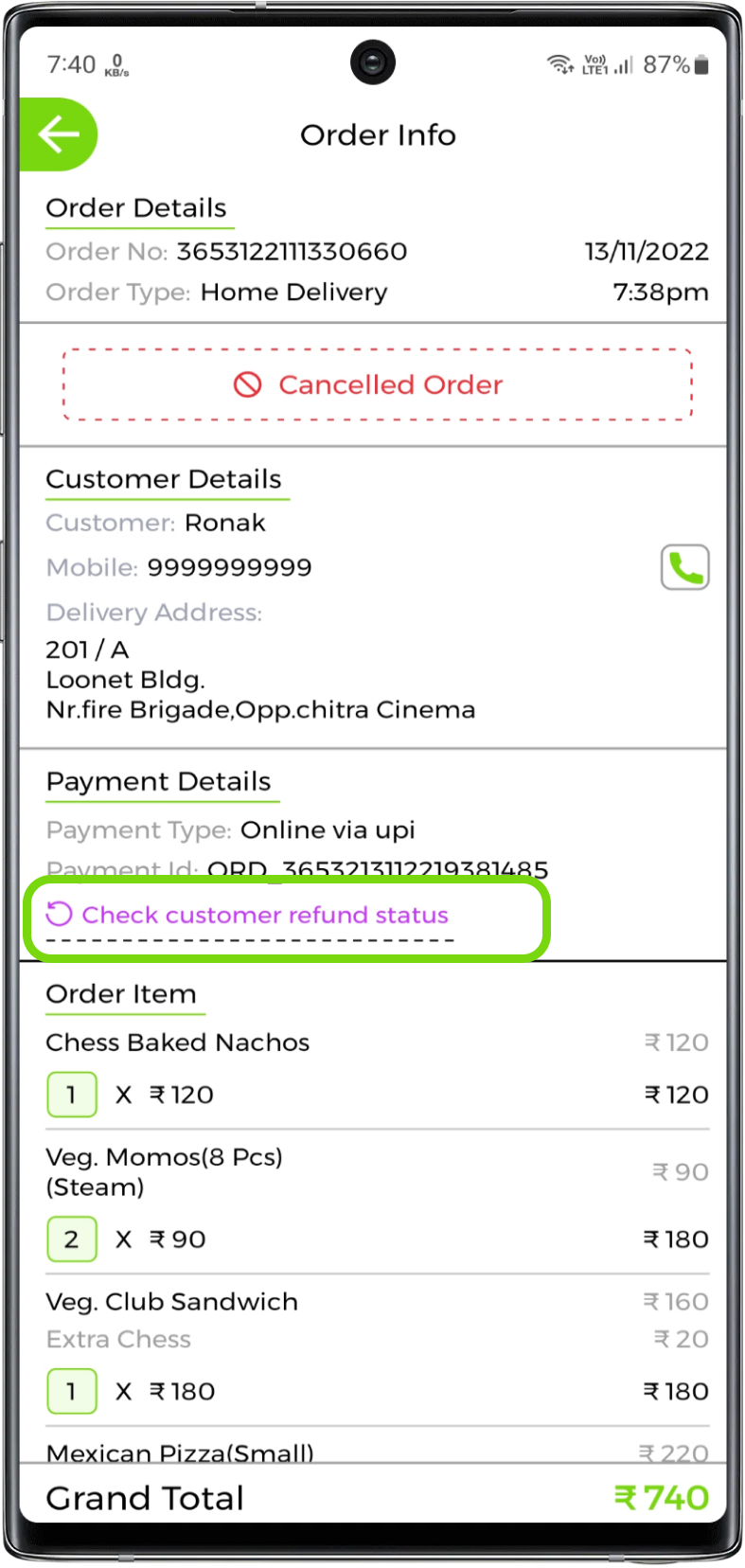 You can even track the refund status of the online payment order. You can check refund status only if the order is online. No refund status will be available for cash order