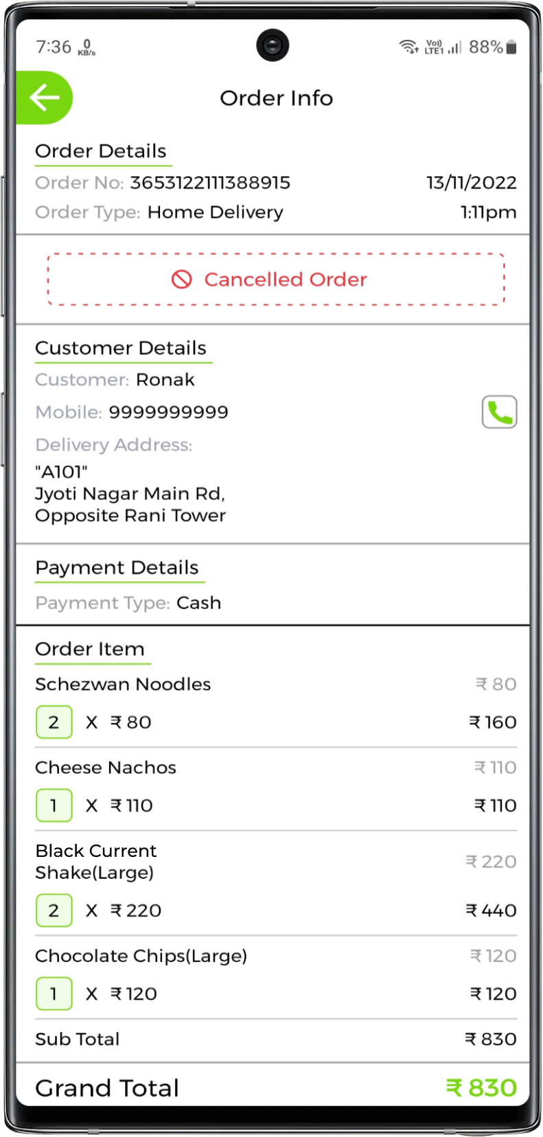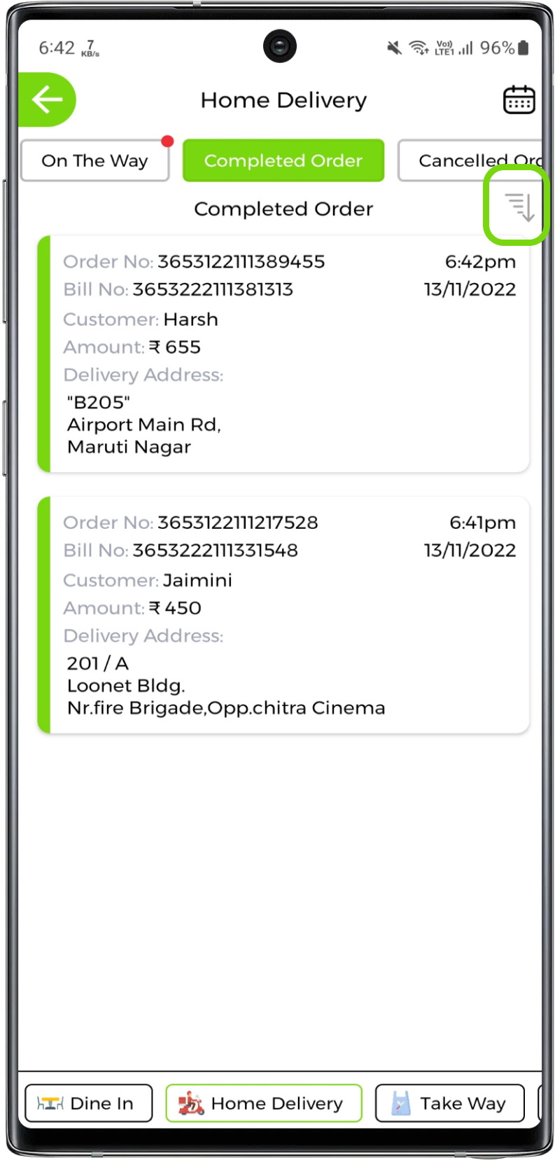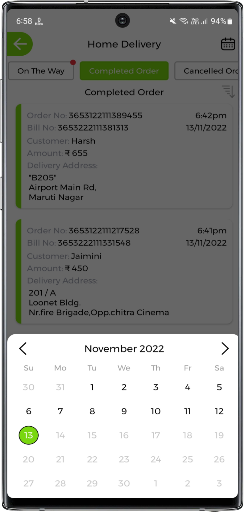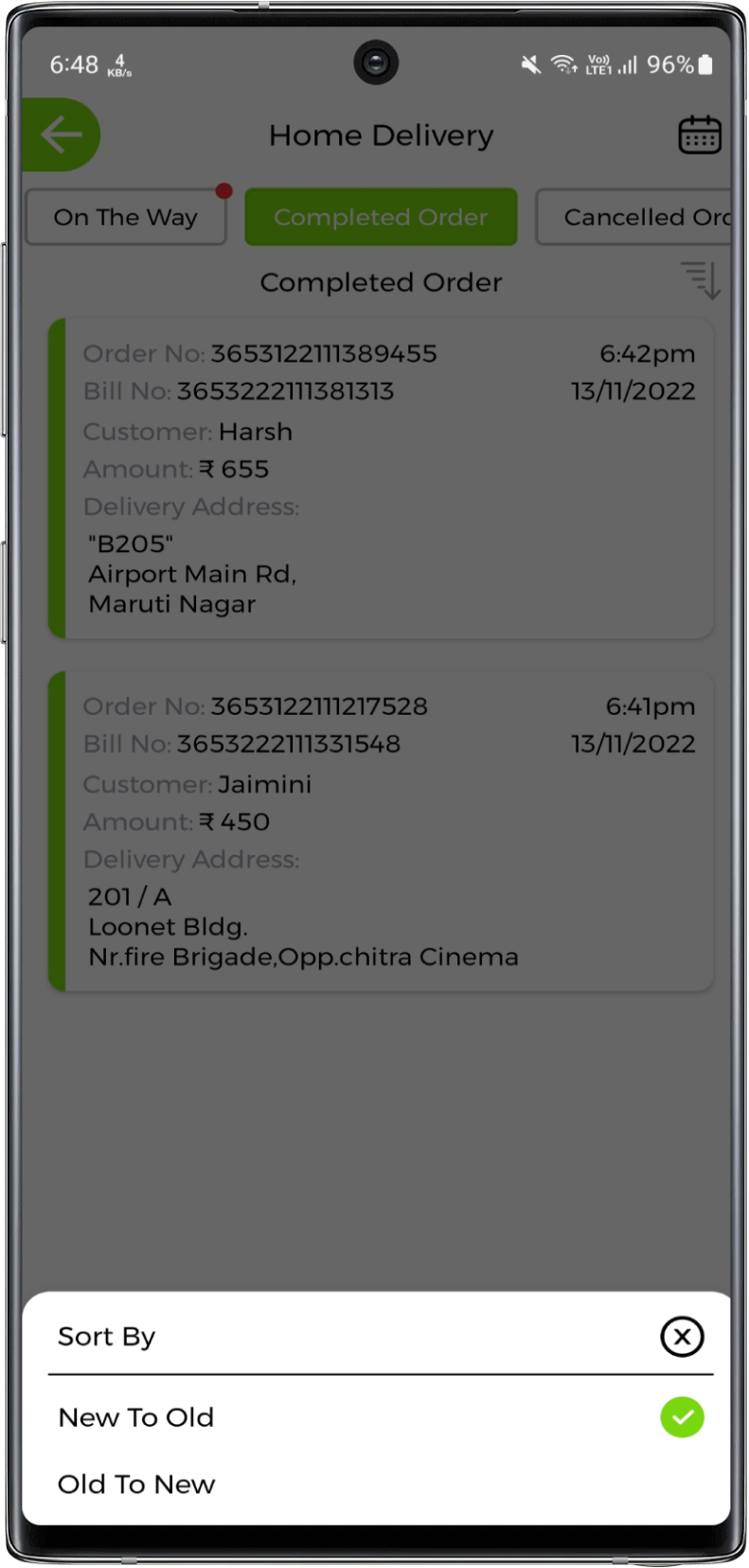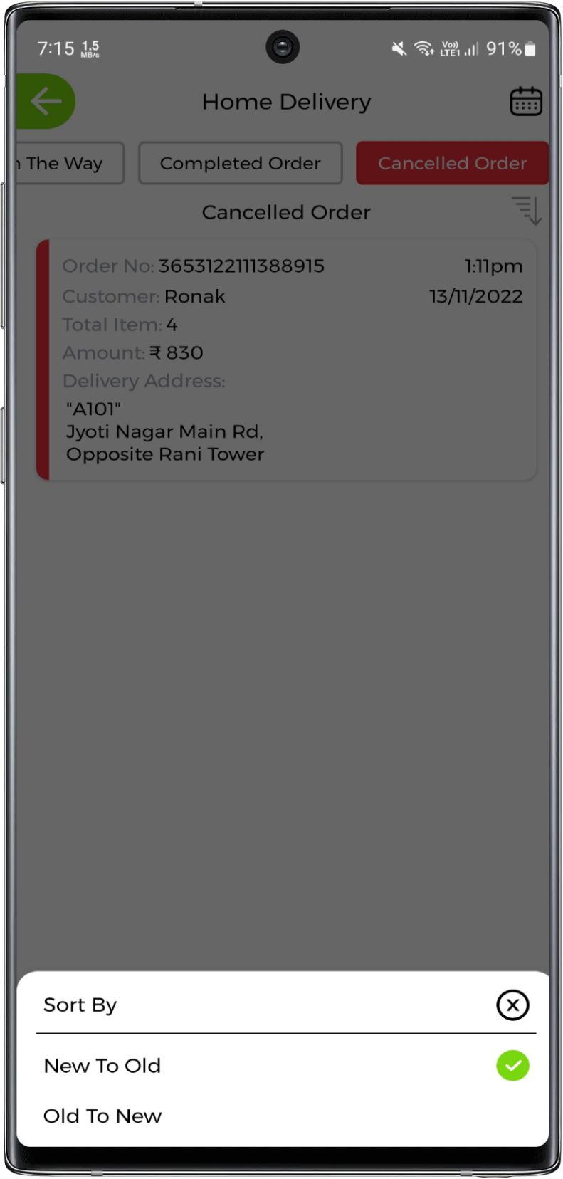 When home delivery order will be placed by the customer, it will listed in new order of home delivery service. Order is placed and its order no is Order No - 3653122111217528