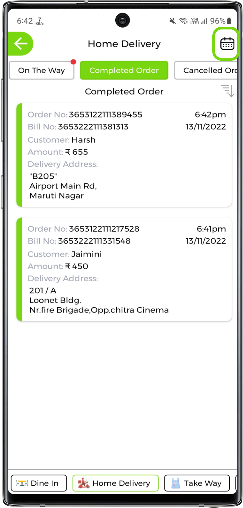 You can also view any dated completed orders by selecting the date from the on the top right corner