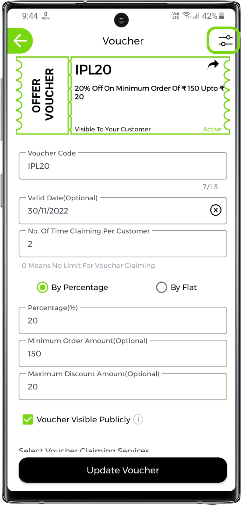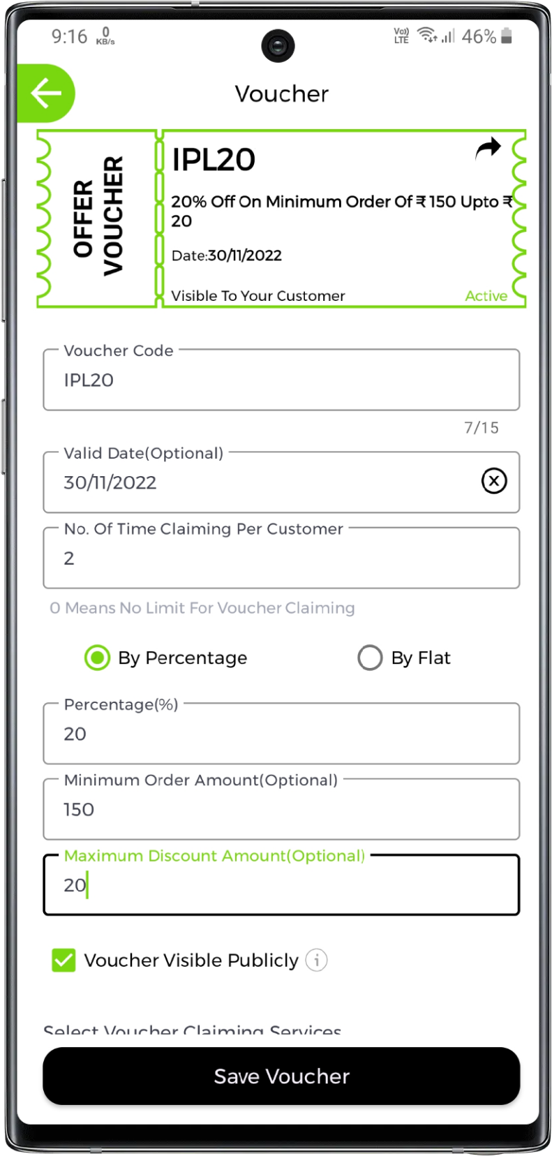 If you want to share the voucher to limited customers you can uncheck the voucher visibility or you can check the voucher visibility if you want to view voucher publicly