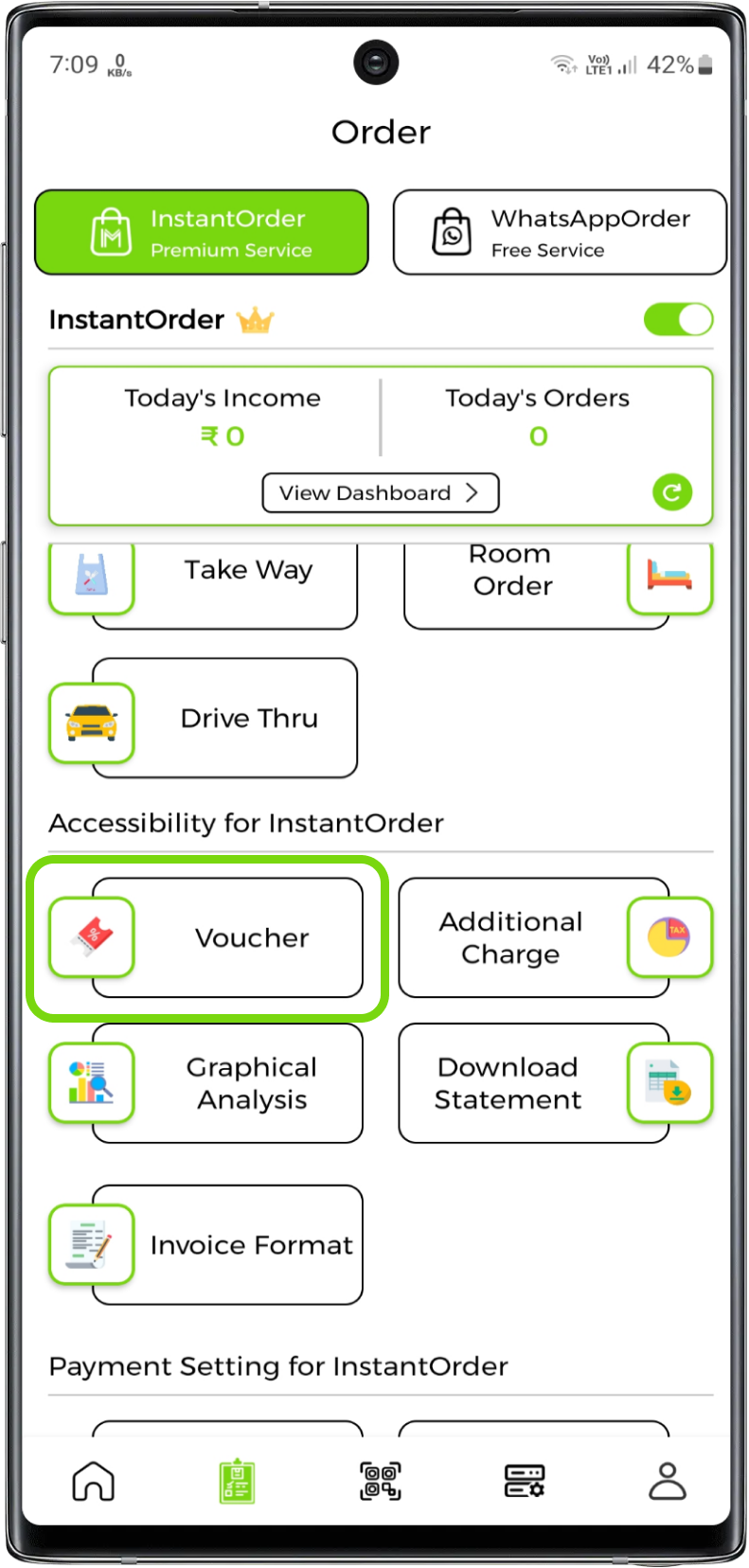 Please make sure InstantMenu is not responsible for the vouchers you create for order