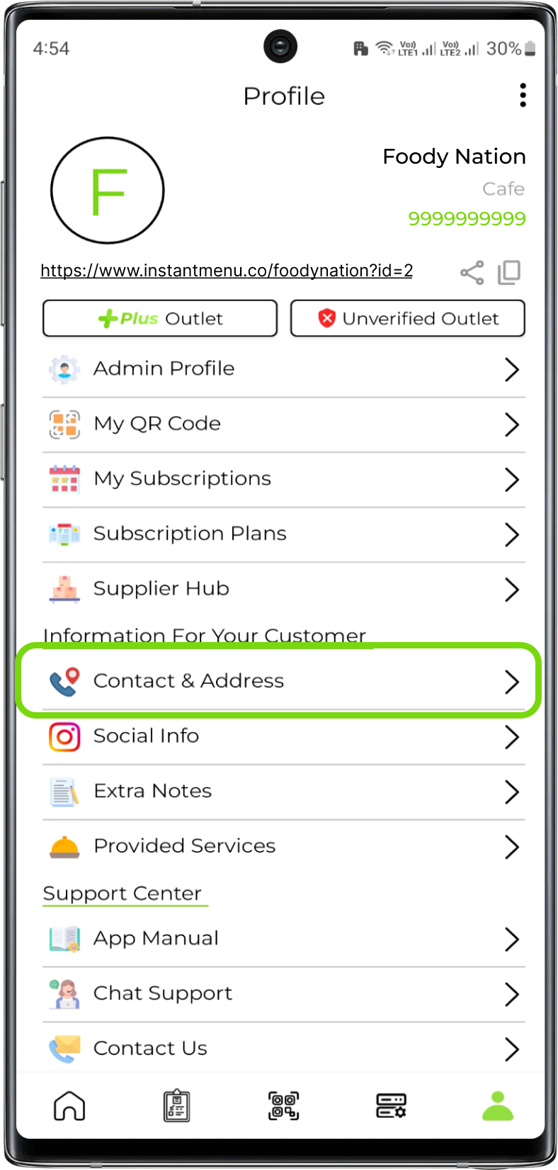 Add or edit your outlet's contact info according to you and save it. This contact info will reflect on your profile where your customers can view all these details and thus it will help them to reach you