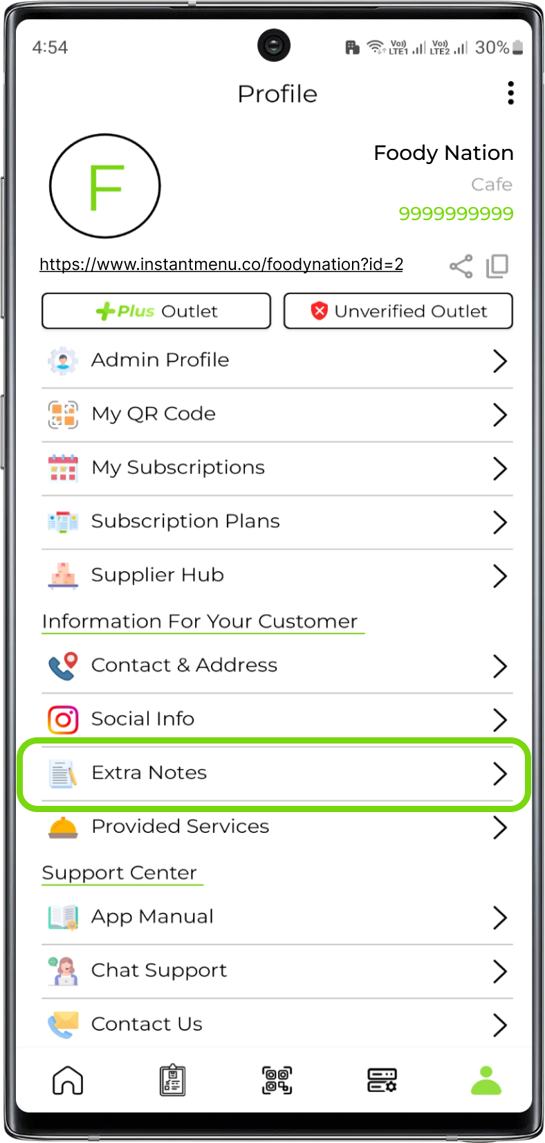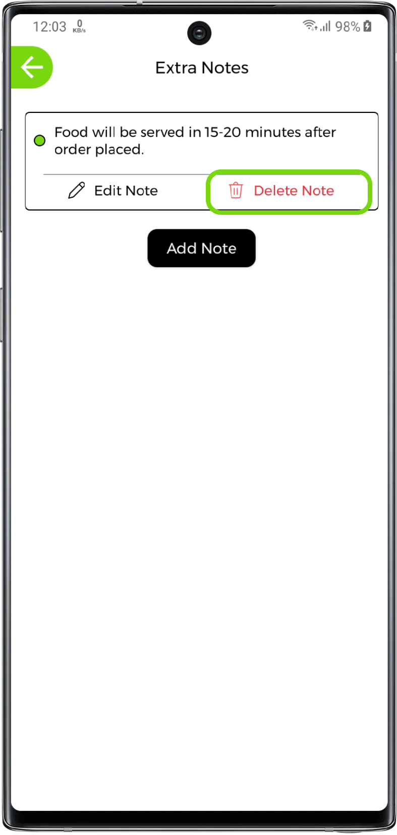 Extra notes are usually found at the end of menu. Outlet's can mention the instructions they want to show to their customers like Food will be served in 15-20 minutes after order placed, Please check the parcel before carrying out, Order accept between 10am to 3pm and 7pm to 11pm, etc.