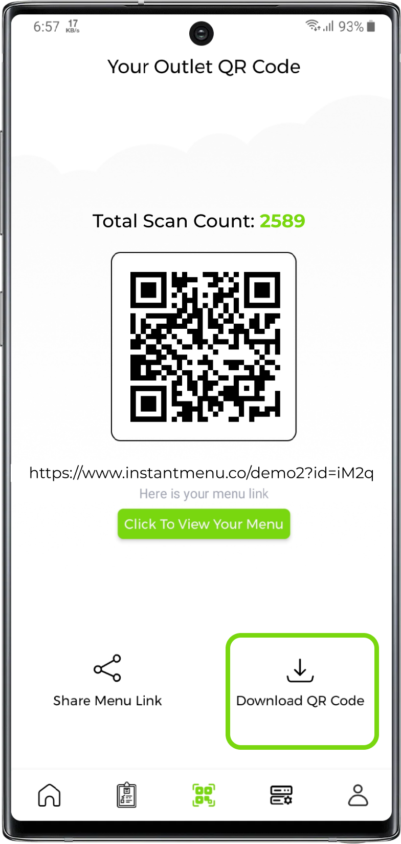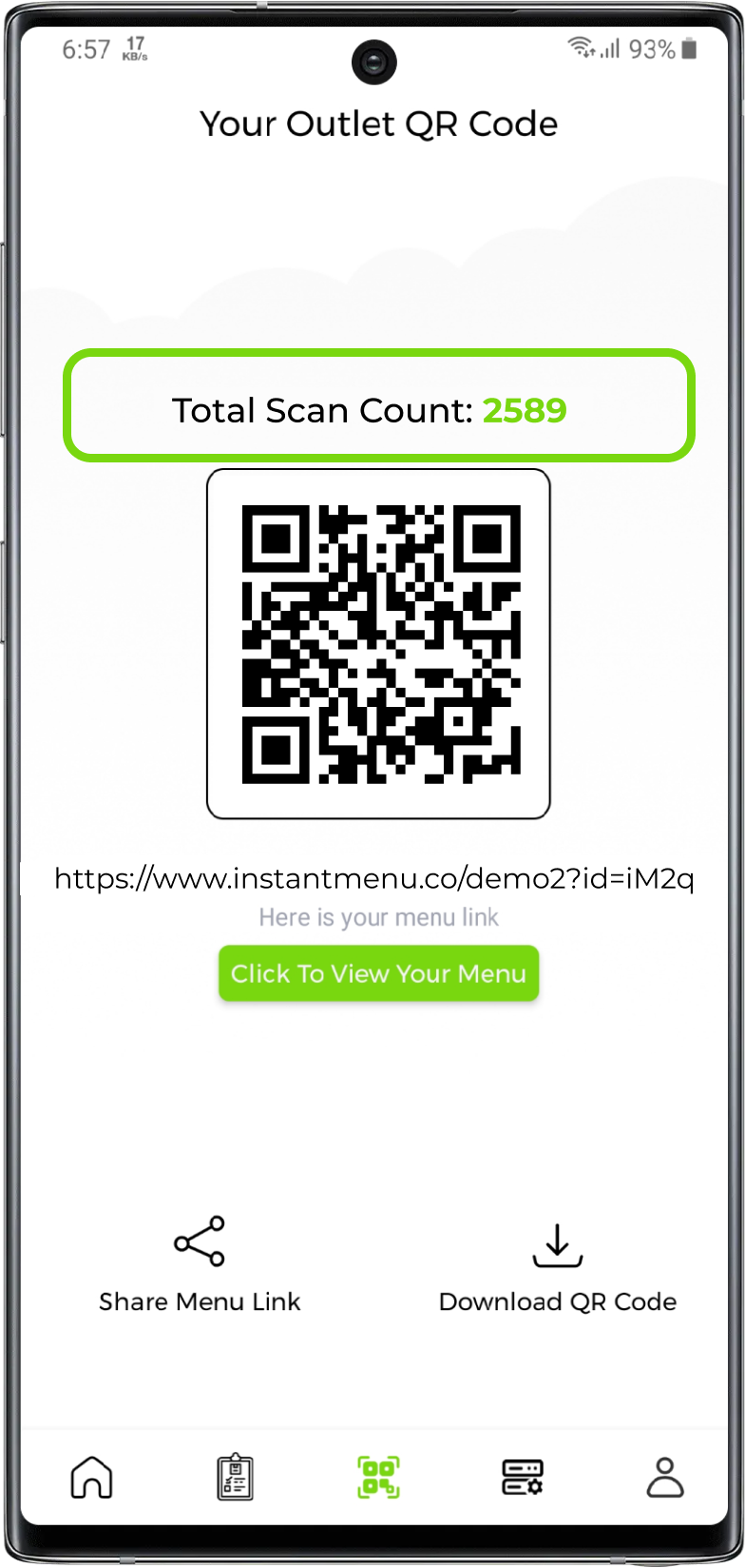 InstantMenu helps to download QR code in a quick, easy and convenient way. The concept is simple, the idea is brilliant! Just download QR code, take a print of it, stick it either on standy or table. Customers don't need any type of application to view the outlet's digital menu created from InstantMenu. Instead, they just need to scan that QR code using camera app, or Google Lens or any other QR scanner and outlet's digital menu will be on their screens in seconds. From there, customers can view and order their delicious meal. This new way of viewing menu and ordering is convenient and easy for your customers, while you save time on paperwork.
