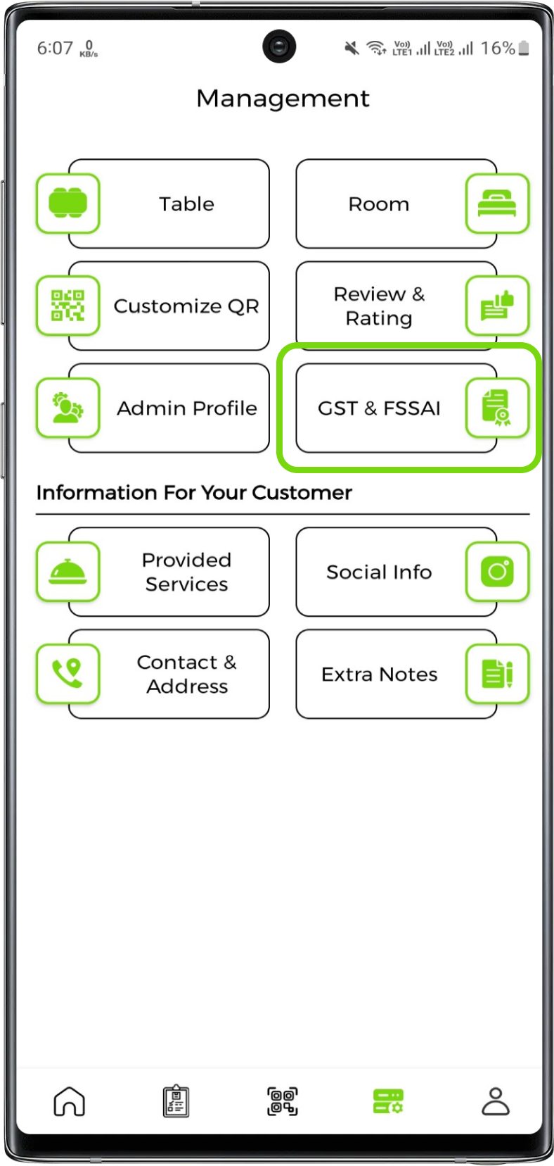 If you want to show GST number in your digital menu you have to add GST details. Once your GST number is verified from InstantMenu, it will be viewed in your outlet's digital menu as well as you can collect GST credit on it. You can set gst slabs from the gst slabs list on the basis of services - like apply GST of 5% on home delivery order, etc.