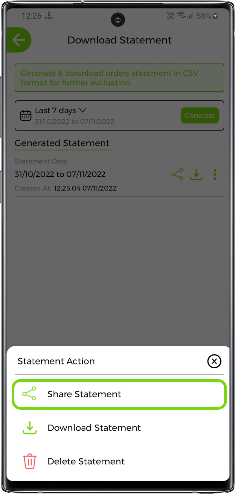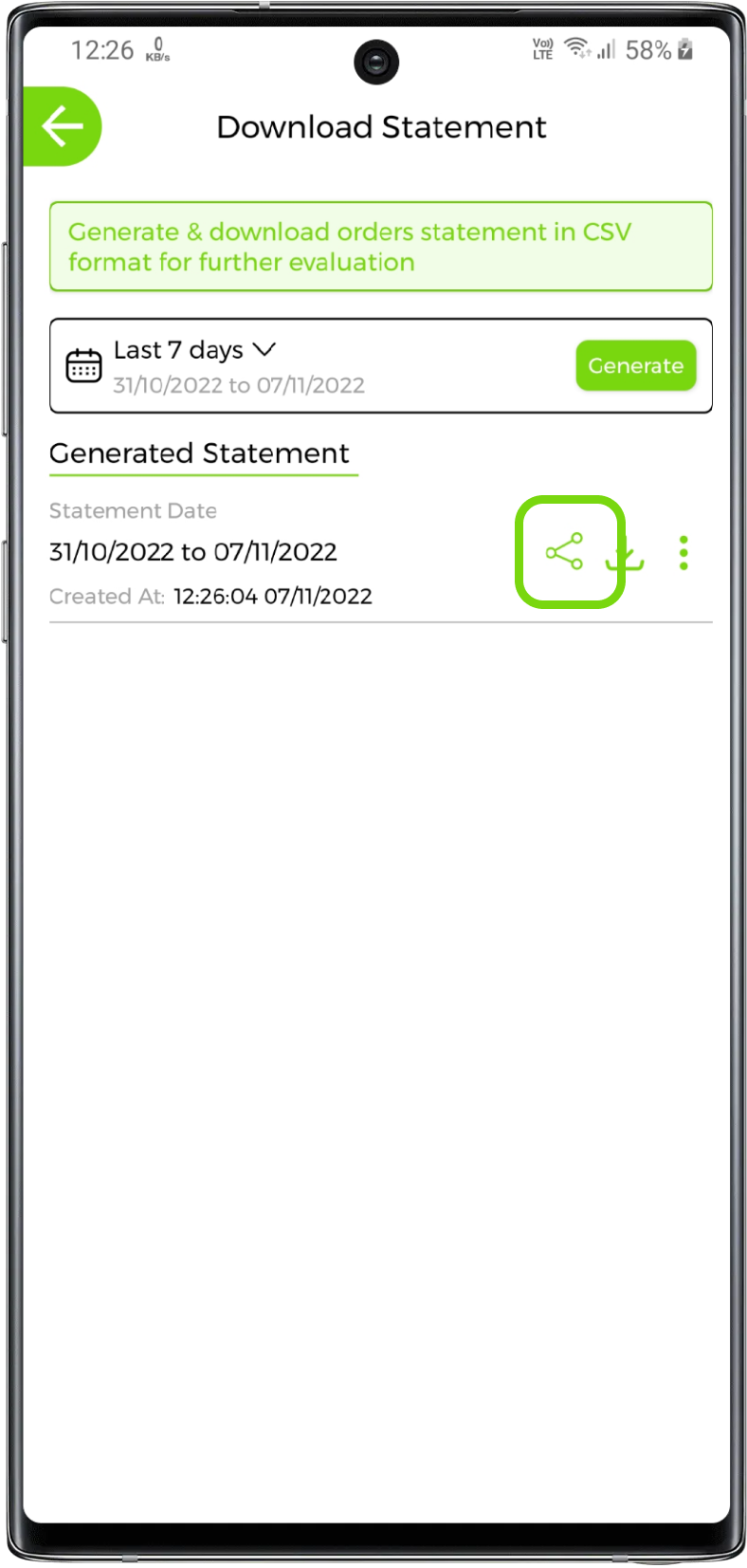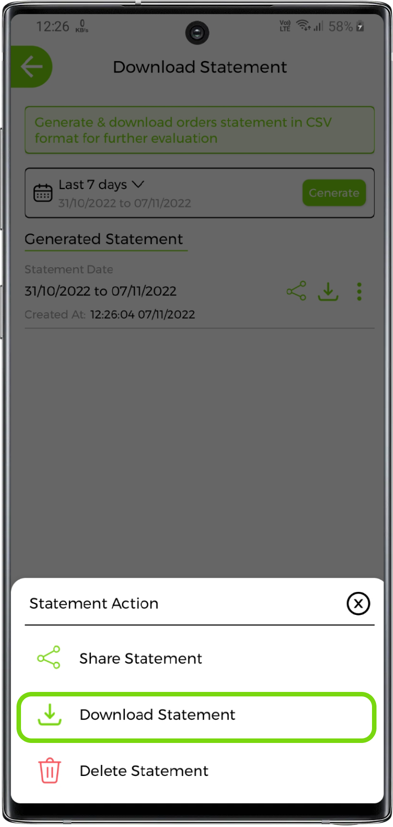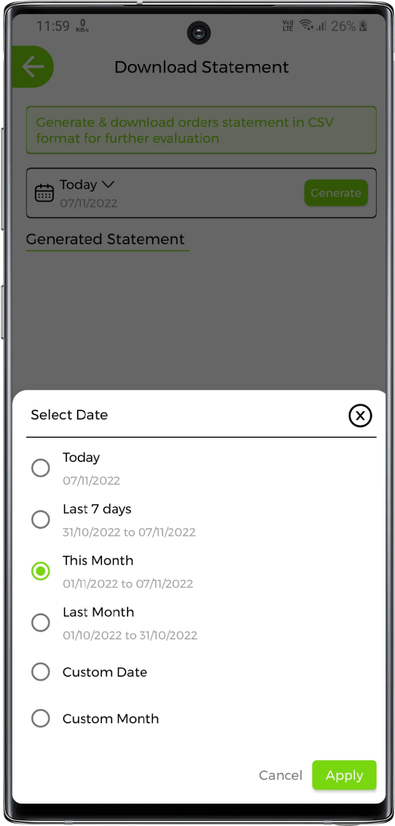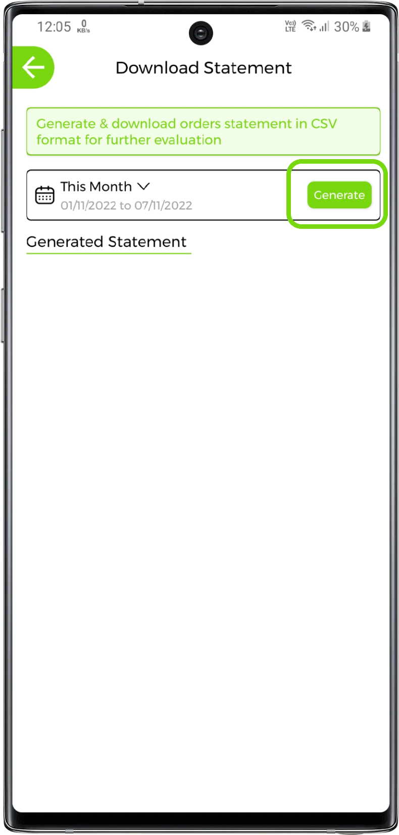 Download the order statement based on custom dates. This order statement will be used for further evaluation like file income tax returns. Statement will be downloaded in csv format so it will be easy to manage the order record